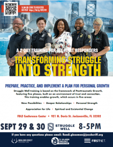 2nd Alarm Project is presenting Struggle Well in partnership with the Boulder Crest Foundation. In this 2-day course, the participants will gain an in-depth understanding of the Struggle Well philosophy, and the practices and principles of Posttraumatic Growth.